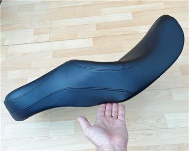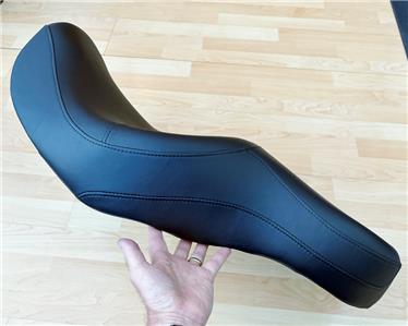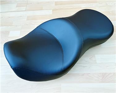 This genuine Harley-Davidson Sundowner Deep Bucket Touring Dual Seat provides the maximum in long-riding comfort along with a healthy helping of style and quality. The seat features a deep, contoured rider bucket that provides lower back support to keep you comfortable longer. The wide pillion gives your passenger added comfort as well. Bar & Shield logo embossed on the rear. Complete with chrome rear bracket, pillion grab strap and H-D fitting instructions. The rider's section is 405mm wide and the pillion section is 305mm wide.
