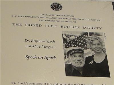 This is for the book, The Franklin Library Signed First Edition - Spock on Spock by Dr. Benjamin Spock and Mary Morgan. Book is sealed. Excellent condition. For your collection or reading pleasure.