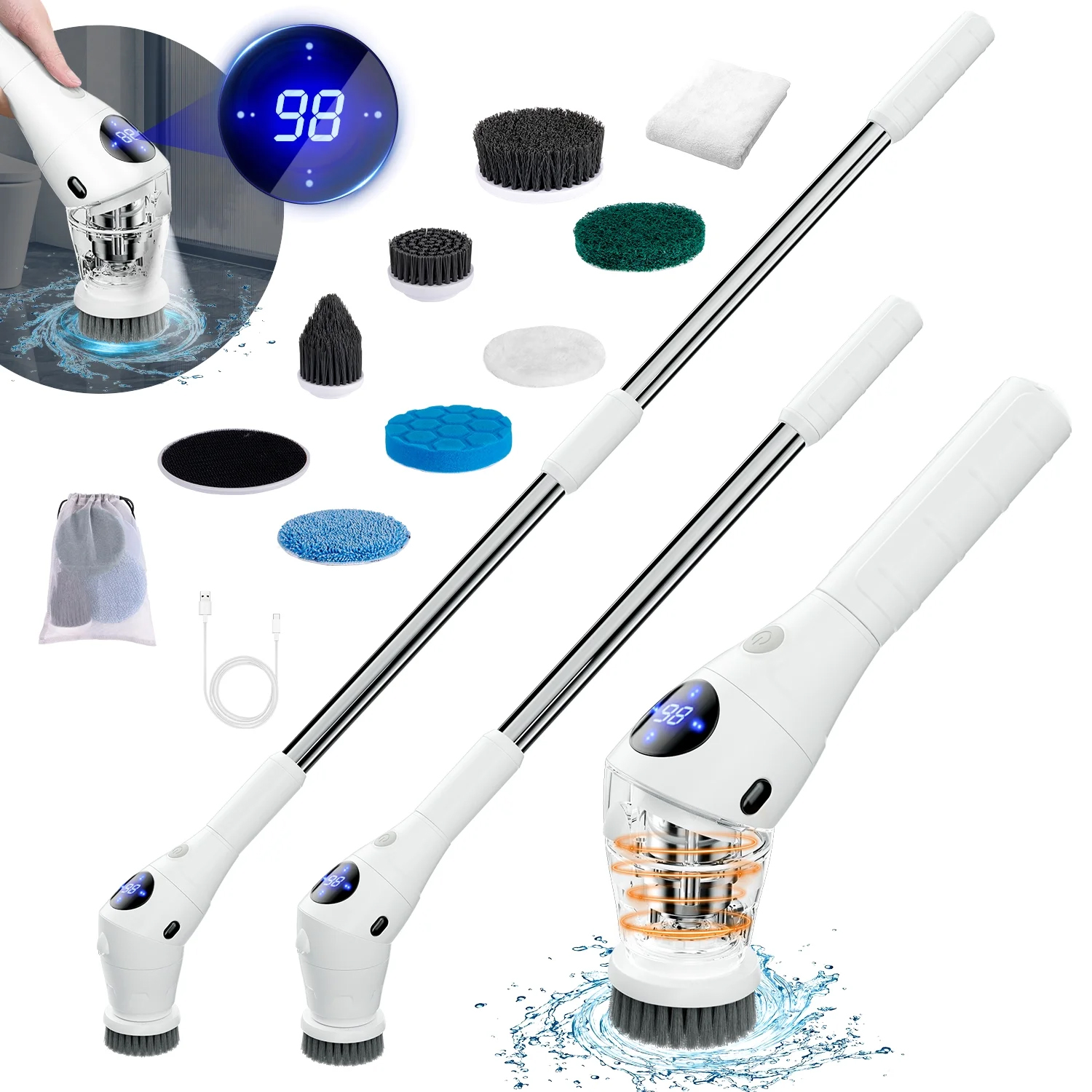 The cleaning brush electric is equipped with an advanced 2500mah lithium battery with type-c cable and adapter that can clean your whole house for 90-120 minutes in just 3-5 hours of charging time. You can also see the battery status on the led screen, so you don't have to worry about running out of power. (Please charge it fully before first use).