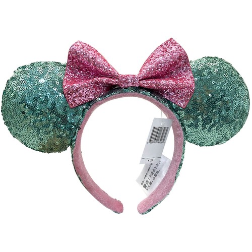 Disney- Parks Mint Green Pink Sugar Rush Sequins Minnie Ear Bow Headband US
