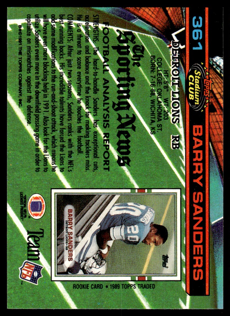 | 1991 Stadium Club Barry Sanders Detroit Lions #361 |