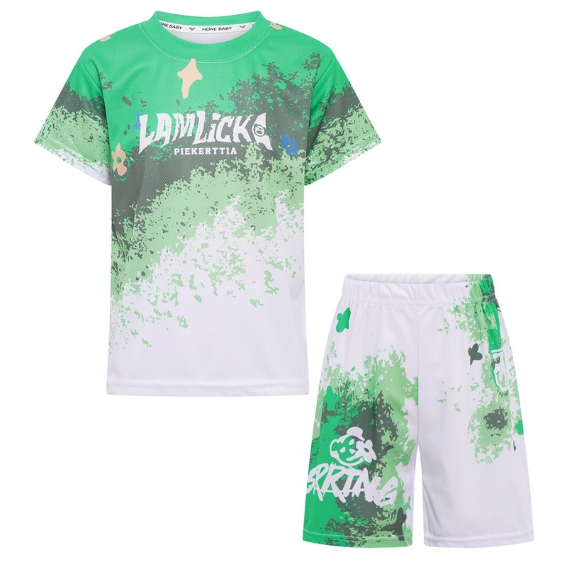 Made from 100% polyester, the outfit is quick-drying, keeping kids dry and comfortable during intense sports activities, fitting the modern demand for high-performance sportswear.