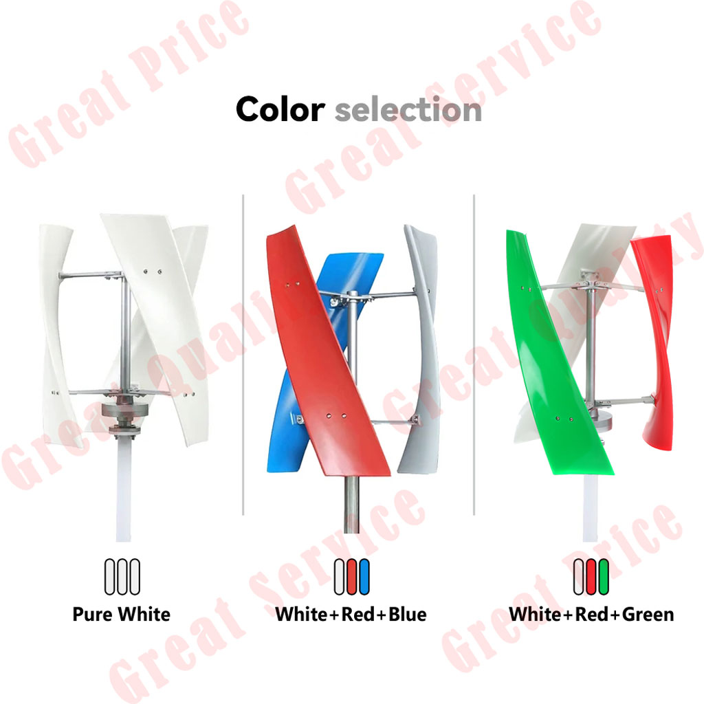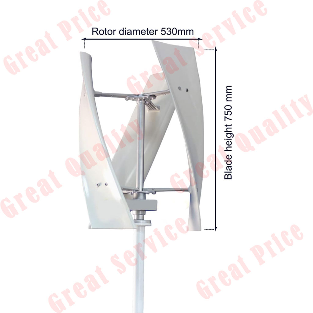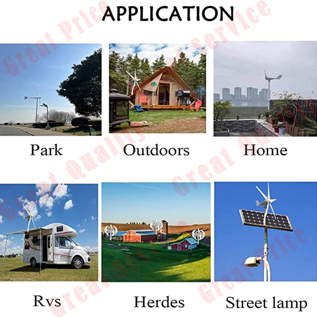 The Wind Turbine with the Coreless Permanent Magnet Generator and Three High-strength Fiberglass Blades Is More Durable and Has a Long Service Life. the Spiral Blades Are Aerodynamically Designed to Make the Rotor Run Smoothly and Reliably, Which Leads to Stable Electricity Generation. Besides, It Has Maximum Speed Protection. It Is Well Suited for Boats, Gazebos, Cabins or Mobile Houses, and Other Energy Supplies for Homes, Businesses and Industry.