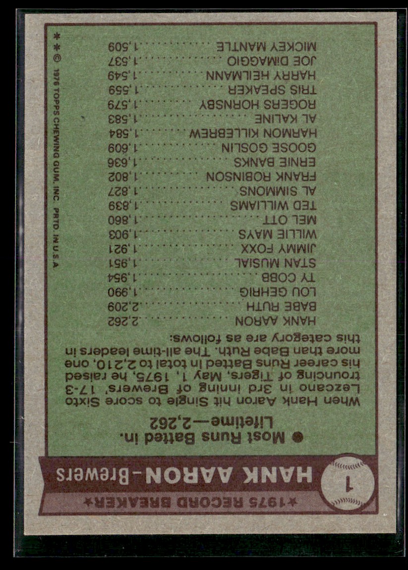 | 1976 Topps Hank Aaron EX/MT Set Break #1 |