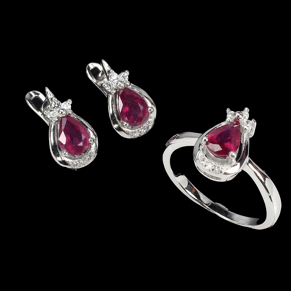 925 Argento Sterling Gioielli Set Pera Rubino 6x4mm Gemma Pietra Naturale