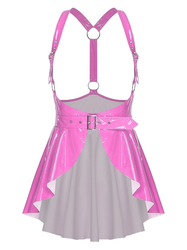 The O-ring linked Y-back design is both stylish and edgy, giving the skirt a modern and fashionable look that is perfect for those who love to make a statement.