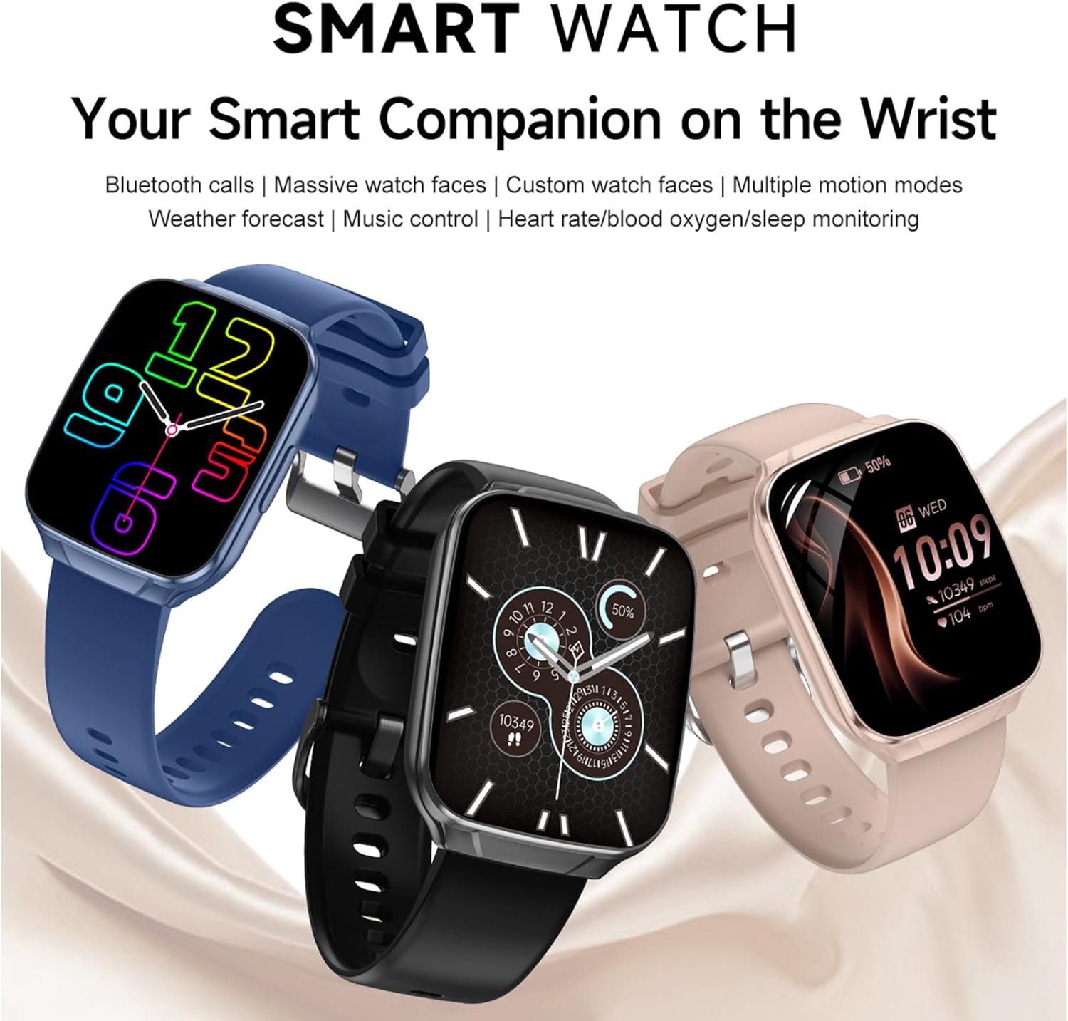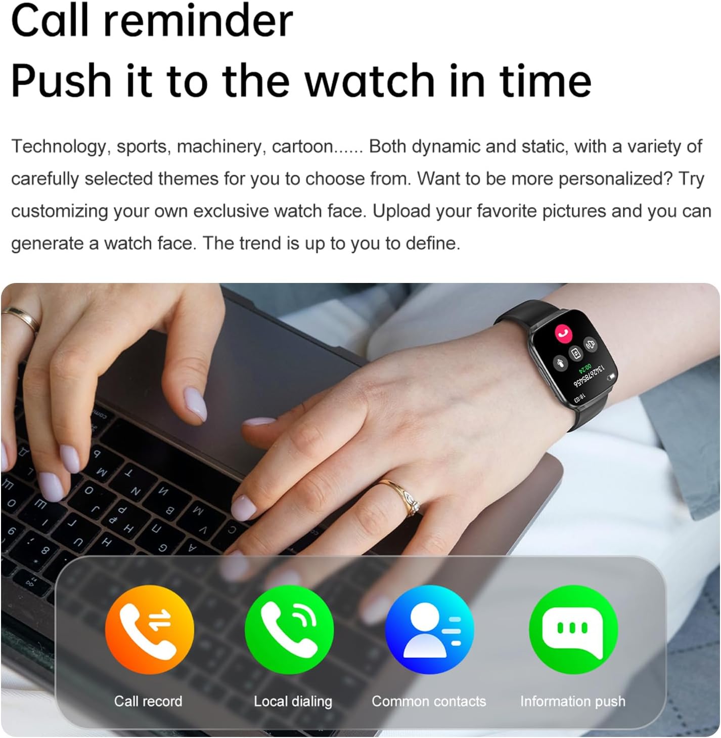 • 【Bluetooth Call and Message Notifications】The Smartwatch features a BLE V5.3 chip, allowing you to make and receive calls directly from your wrist. Enjoy clear and stable calls anytime, anywhere. Easily sync with iOS and Android phones (iOS 10.0+/Android 5.0+) to receive incoming calls, text messages, and app notifications.