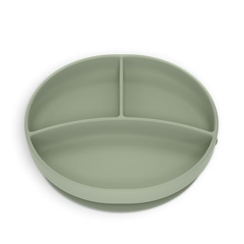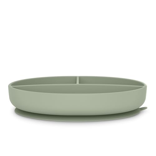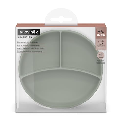 Suavinex, Assiette pour Bébé avec Ventouse, en Silicone avec Compartiments, Anti-Renversement, pour l'Alimentation Complémentaire et la DME, Compatible Lave-vaisselle et Micro-ondes, +6 Mois, Vert