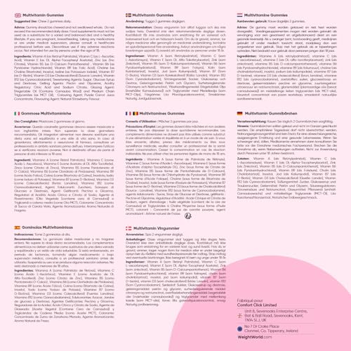 Multi vitamines Sans Additifs – Contrairement aux comprimés ou gélules, pratiques à prendre sans eau, ces gummies multivitamines et minéraux, faibles en sucre et ne collant pas aux dents, peuvent être consommées partout, à tout moment. De plus, ces gummies multi vitamines adultes contiennent uniquement des ingrédients d’origine naturelle, sont sans OGM et sans gluten.