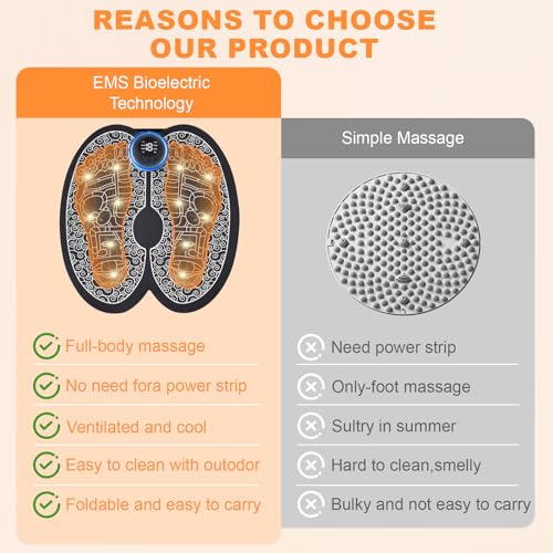 【Technologie EMS pour une Relaxation】Notre appareil de massage des pieds EMS utilise une technologie avancée de stimulation musculaire électrique (EMS) avec des impulsions à basse fréquence pour masser et dénouer les tensions. Il stimule vos muscles et vous offre une expérience de massage profonde et revigorante, pour soulager la fatigue et les courbatures.