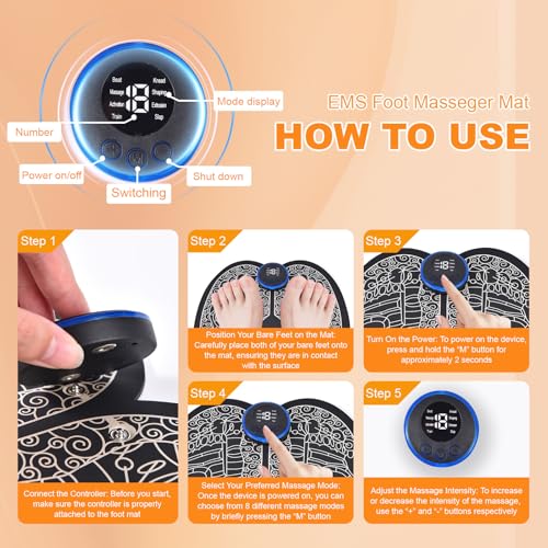 Massage des Pieds, Masseur de Pieds électrique, avec 8 Modes et 19 Intensités, EMS Masseur Plantaire Pliable et Portable, pour la Circulation Sanguine et le Soulagement des Douleurs Musculaires