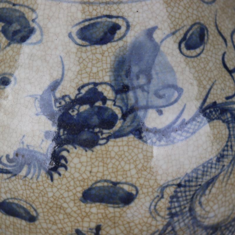 Old Chinese Blue & White Porcelain Open Glaze Painted Dragon Pattern Vase