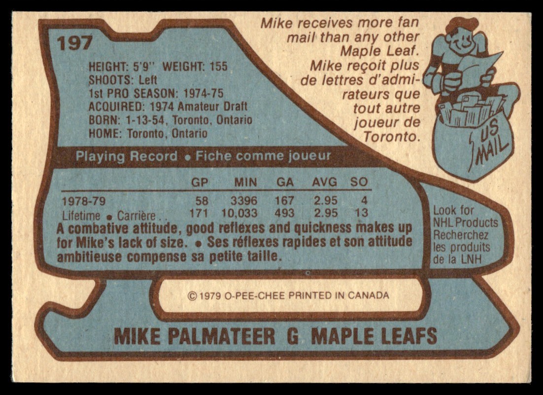 | 1979-80 O-Pee-Chee Mike Palmateer Toronto Maple Leafs #197 |