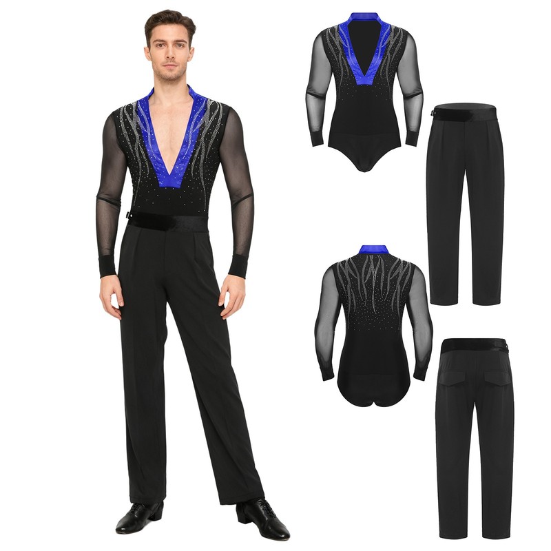 The bodysuit and long pants combination provides a coordinated and stylish appearance, suitable for various dance styles such as Latin, tango, salsa, and ballet.