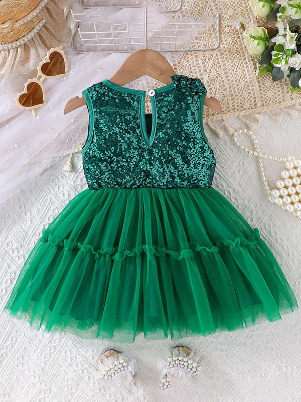 The shiny sequins bodice with a bow detail adds a touch of glamour and sparkle, making your baby girl stand out in the crowd.