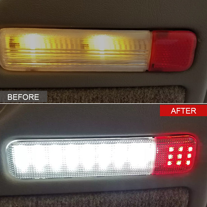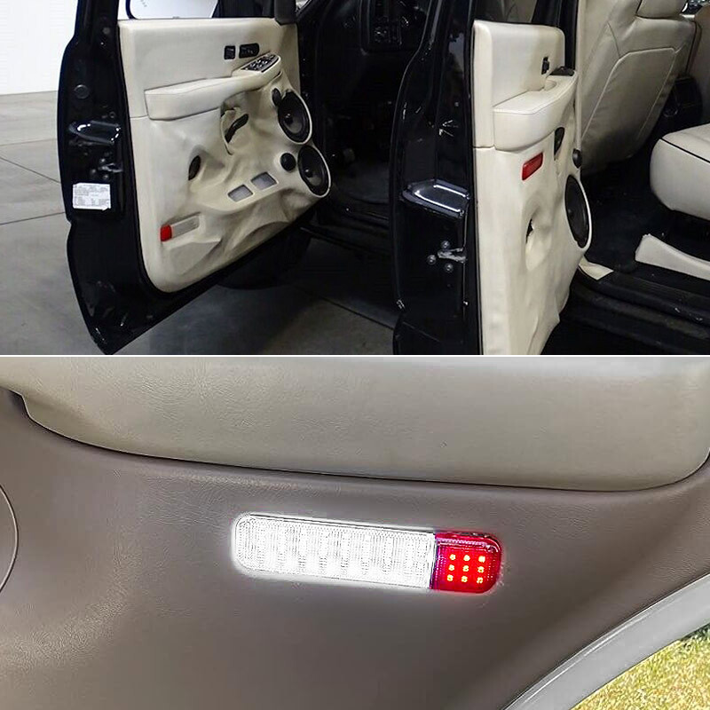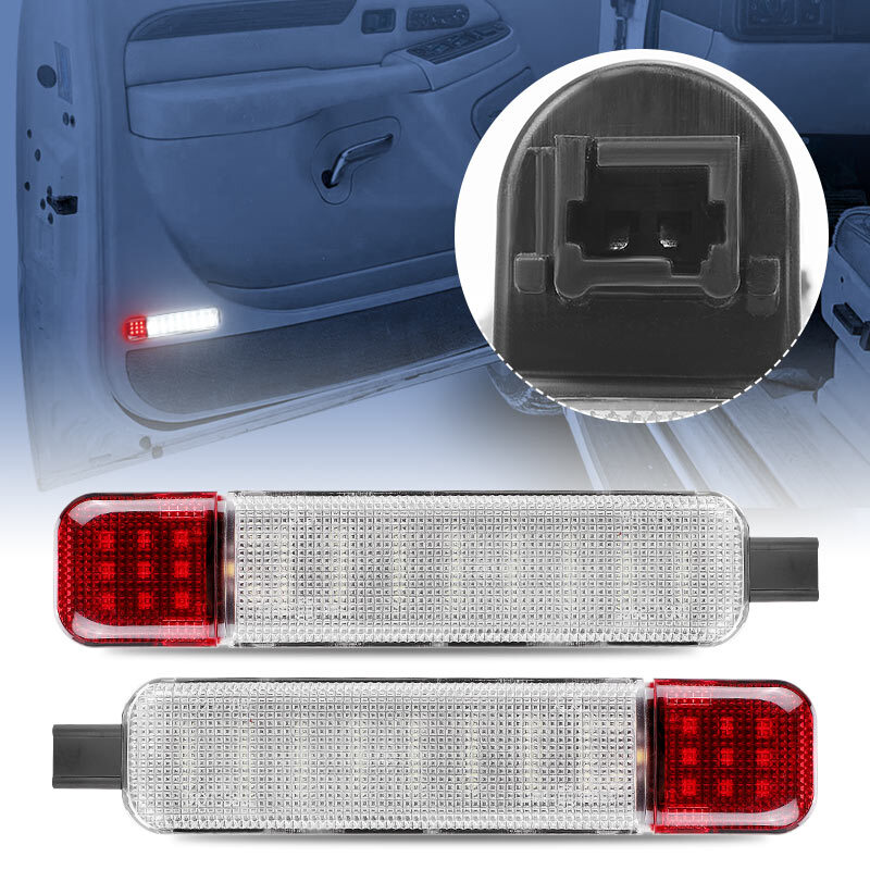 Features: Upgraded Styling Door Panel Courtesy Light - Our LED Courtesy Reflector Light Replacement is equipped with 36 SMD LED chips, low power consumption, high efficiency and energy saving. More than just a replacement for side door lights, red and white signal lights give your car a whole new look DURABLE DESIGN - These led door panel courtesy lights are weather-sealed, Waterproof/Dust proof/Shockproof. Made of light-weight durable ABS plastic housing and tough PC lens, lifespan more than 55000 hours EASY INSTALLATIOIN - Plug and play, no wiring or modification, no damage to the original housing. Just remove the burnt out or old OEM lights and plug the new light. Simple but cool upgrade only in 15 minutes or less. Perfect replacement for the OEM door panel courtesy lamp.