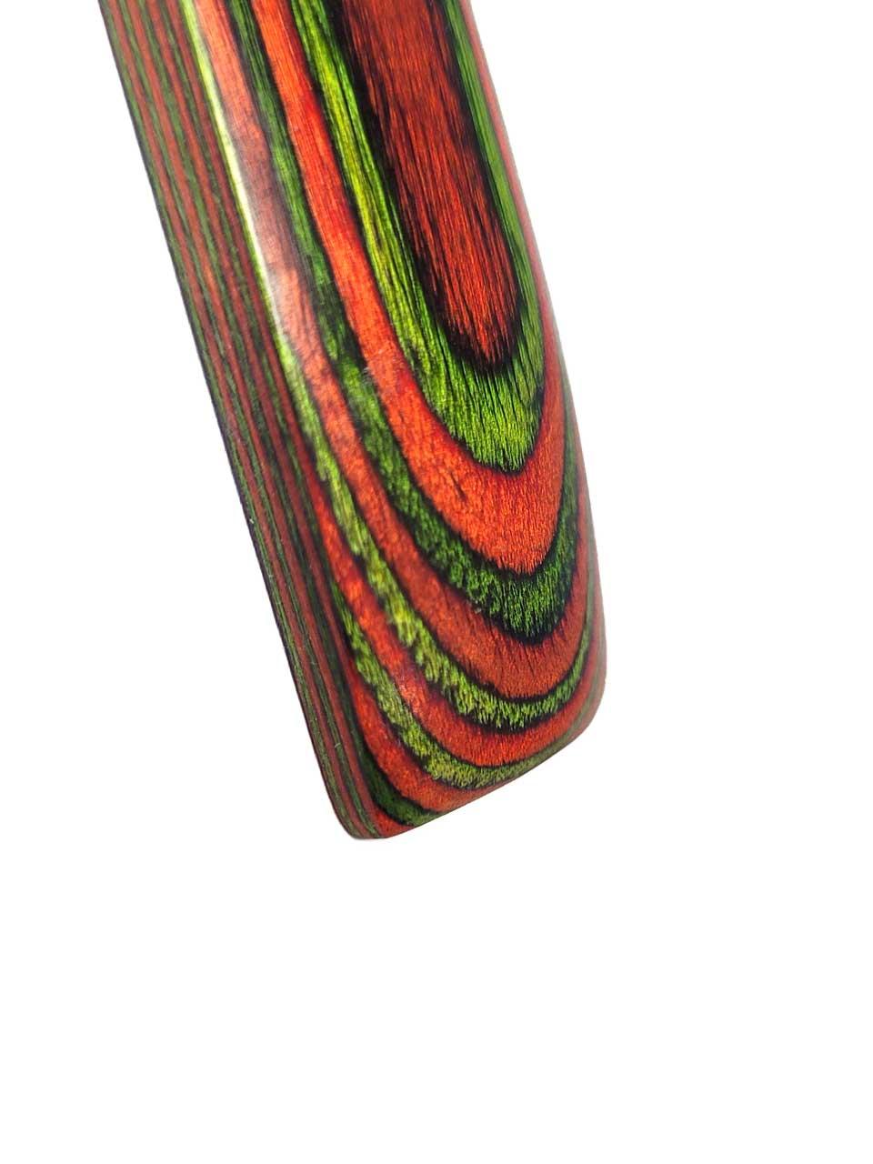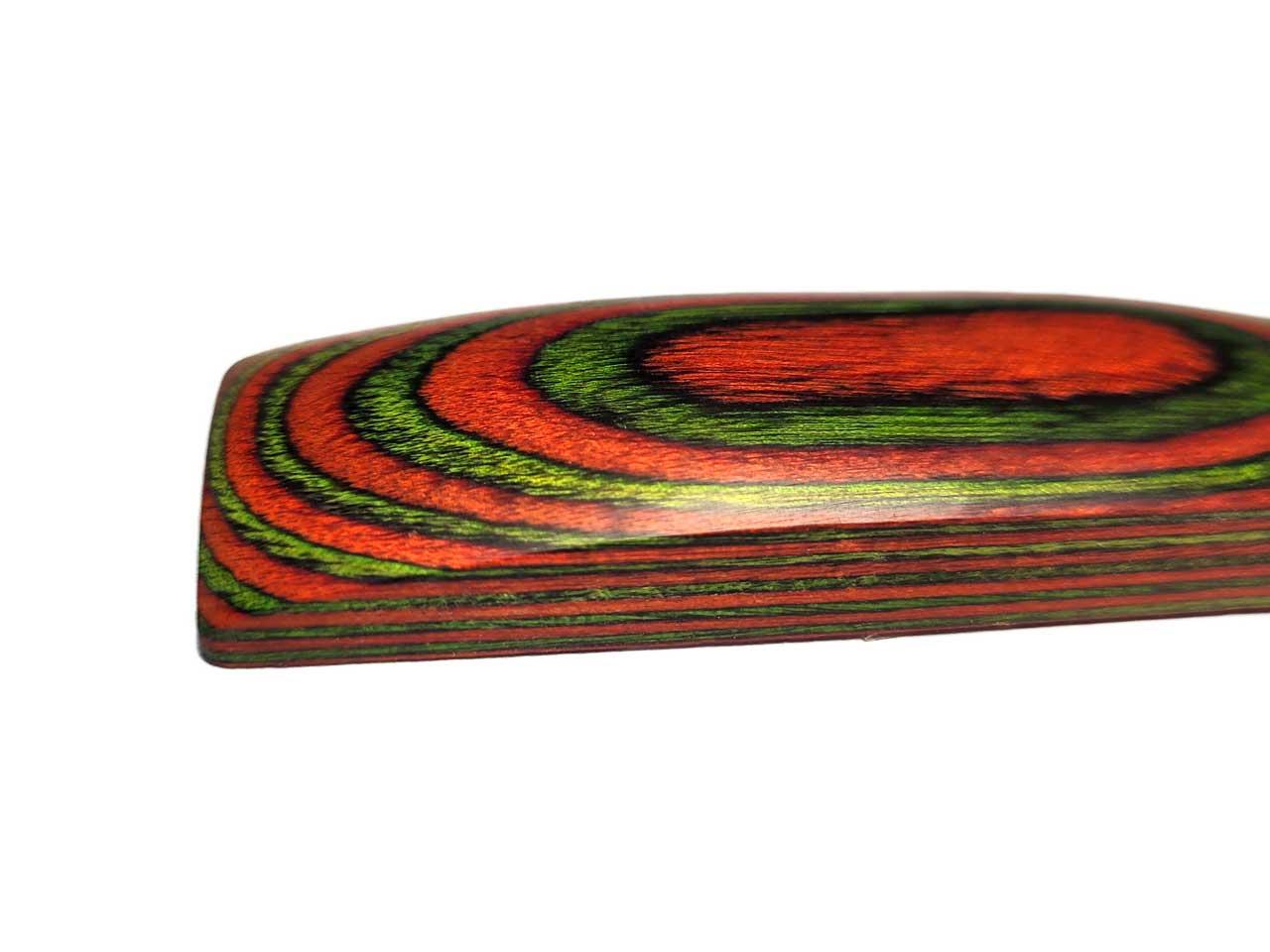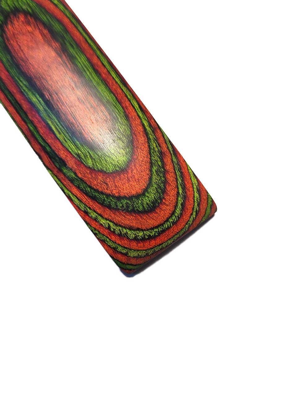 Possibili campi di applicazione: manici di arco, manici di coltelli, gioielli di alta qualità, legno decorativo, parti di strumenti, manici, tornitura di legno di tutti i tipi, legno di arco e componenti di arco e molti altri campi di applicazione individuali. È anche un buon sostituto per Dymondwood, Actionwood, legno Pakka o Diamondwood.