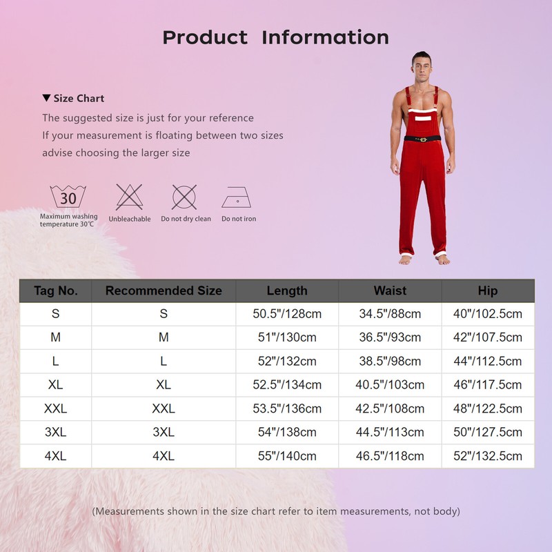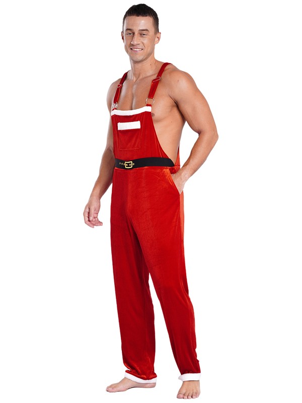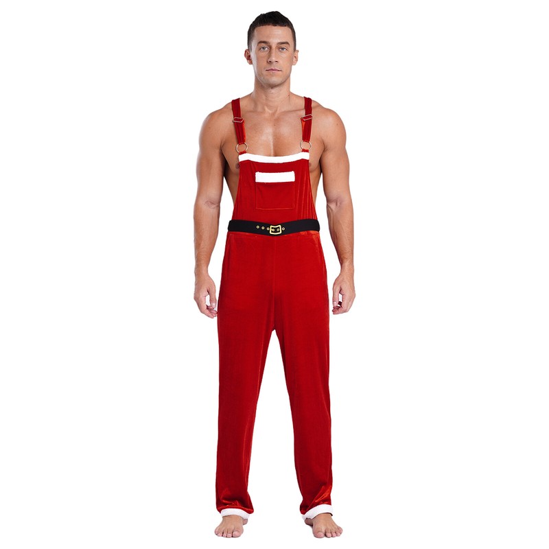 A Christmas Santa Claus costume jumpsuit for men, with classic style and colors, fits for Xmas parties.