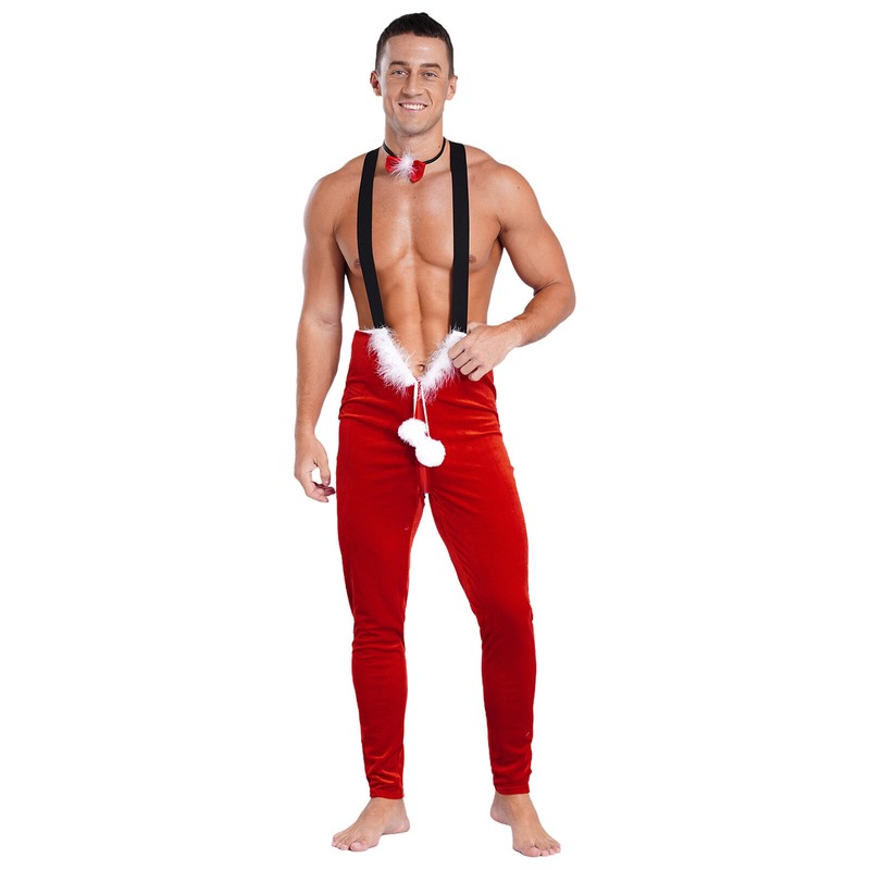 UK Men Christmas Velvet Jumpsuit with Neckband Holiday Party Santa Claus Costume