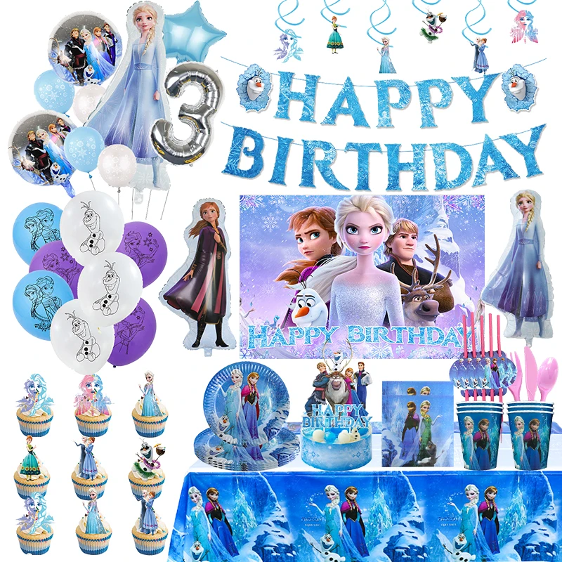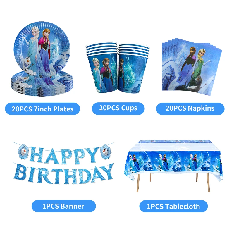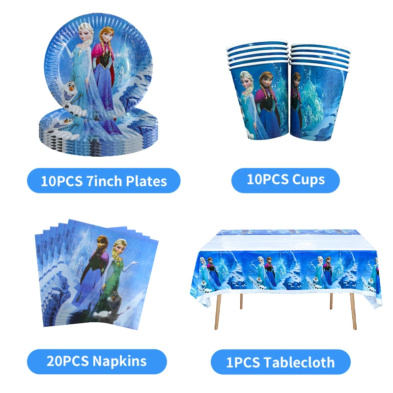 Disney Frozen Elsa Birthday Party Decoration Princess Anna Paper Plate Cup Napkin Supplies Backdrop Supplies for Kid Girls