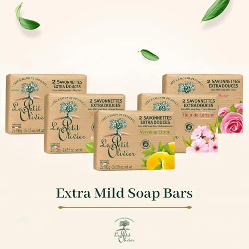 LE PETIT OLIVIER - 2 Savonnettes Extra Douces - Rose - Parfum De La Région De Grasse - Nettoient La Peau En Douceur - Fabriqué en France - 2x100g