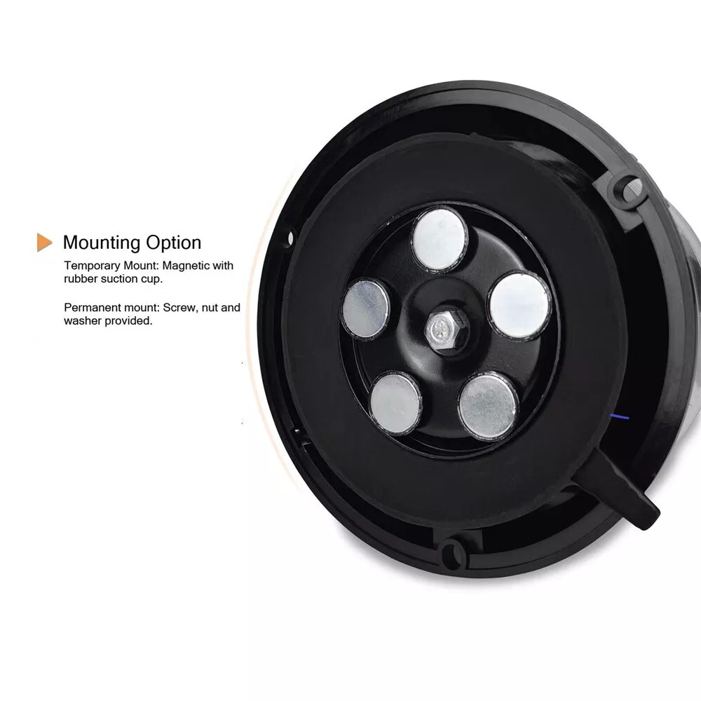 - Installation Versatility: Choose Between a Magnetic base with a Rubber Suction cup for swift Deployment or use the inclusive screws and bolt for a more permanent fixture.