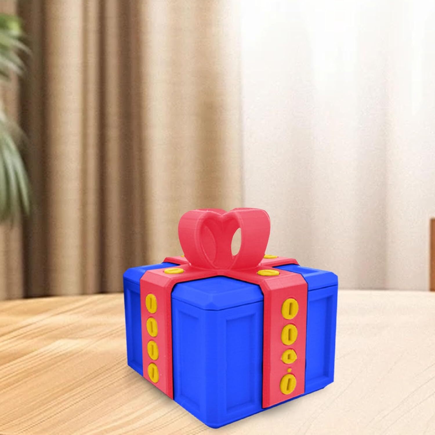 Desktop Ornament: Die Geschenkbox dient auch als dekorative Verzierung für Schreibtische oder Regale. Sein faszinierendes Design und die hellen Farben machen es zu einem herausragenden Stück, das jedem Arbeitsbereich oder Wohnbereich eine verspielte Note verleihen kann.