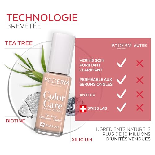 𝐄𝐍𝐑𝐈𝐂𝐇𝐈 𝐄𝐍 𝐓𝐄𝐀 𝐓𝐑𝐄𝐄, 𝐒𝐈𝐋𝐈𝐂𝐈𝐔𝐌, 𝐁𝐈𝐎𝐓𝐈𝐍𝐄 𝐄𝐓 𝐉𝐔𝐒𝐐𝐔’À 𝟖𝟓% 𝐃’𝐈𝐍𝐆𝐑É𝐃𝐈𝐄𝐍𝐓𝐒 𝐃’𝐎𝐑𝐈𝐆𝐈𝐍𝐄 𝐍𝐀𝐓𝐔𝐑𝐄𝐋𝐋𝐄: PODERM développe des formules innovantes à base de plantes thérapeutiques cultivées sans produits chimiques et distillées pour en extraire des huiles essentielles pures et naturelles. Formulé avec de l’huile essentielle de Tea Tree (antifongique), de la Biotine (nourrissante), du Silicium (fortifiant) et couleurs minérales issues de l’agriculture biologique.