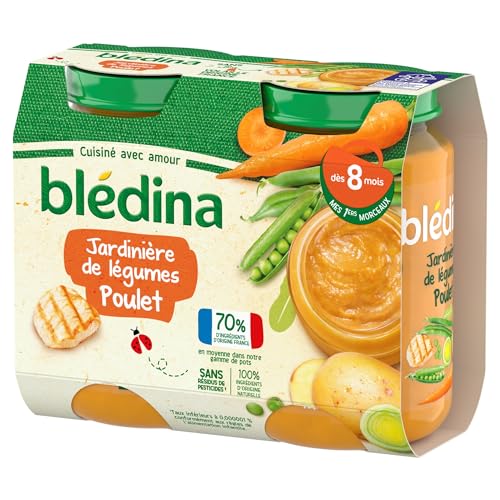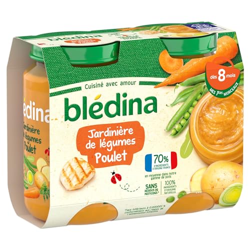 Blédina - Petits pots pour bébé - Jardinière De Légumes Poulet - 70% d'ingrédients Français - Dès 8 mois - 12 pots de 200g