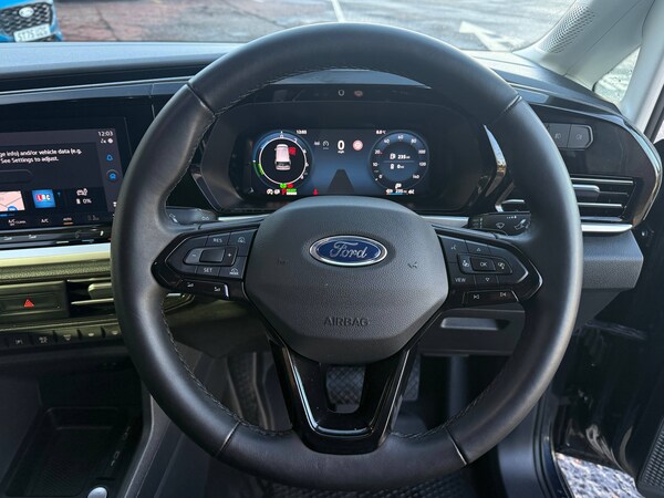 Driver and front passenger airbag, Driver, passenger and 2nd row seatbelt reminder, Front active seat belts, Front passenger airbag deactivation, Front seat belt adjuster, Seat airbags (1st row) and Curtain airbags (all rows), 10 inch touchscreen infotainment display with volume and temperature slider controls, Android Auto and Apple Carplay with USB or wireless connectivity, Brake wear indicator, Enhanced digital cluster with navigation integration, Ford power starter button with deadlocking, Fordpass connect modem including eCall, Front camera system, PAS, Tyre pressure monitor, Auto Headlamps - Follow Me Home, Automatic headlamps on/off, Body coloured front bumper, Day and night inside mirror, Daytime running lights, Dual power heated mirrors, Dual side load doors, Front fog lights, Halogen headlamps, High mounted stop lamp, Intermittent variable windshield wiper, Less roof rails, Misfuel Inhibitor, Power front windows - One touch up-down, Quickclear electric windshield defroster, Rear lights, Rear tinted glass, Solid paint, Tail lamps, Unglazed rear cargo door, Unpainted black exterior cargo door handle, Unpainted black exterior door handle with silver door rail, Unpainted black exterior mirror caps, Unpainted black rear bumper, Weather protection seals, 12V socket in cabin, 2 way front headrestraints, 2nd and 3rd row LED reading lamps, 4 way manually adjustable driver seat, 4 way manually adjustable passenger seat, 4 Wheel disc brakes, A/C Refrigerant - HF01234YF, Base air register, Cargo area hardboard trim, Centre console with open stowage, Driver seat rotary recliner, Electronic dual zone automatic air conditioning, Fabric upholstery, First row LED light with map lights, Flexible bulkhead with window, Foot pedal, Load floor covering, Luggage compartment trim, Overhead storage compartment, Pollen filter without carbon filter, Reach and rake adjustable steering column, Recirculation heater, Rubber cab floor cover, Sensico steering wheel, Sunvisor with ticket holder, Unpainted black interior door handles, DAT pack 2 - Transit Connect, Towing pre pack - Transit connect, Unpainted black cluster and infotainment bezels, 2 remote keys, Immobiliser, Locking wheel bolts, Thatcham alarm system, 12v socket on cargo area, 50L fuel tank, ABS, Charging cable (Type 2 Mode 3), Electric parking brake, Emergency brake assist, ESP, RSC, wind mitigation, Standard duty alternator, Start/stop system, Traction control, 4 speakers, DAB radio bluetooth, voice control and