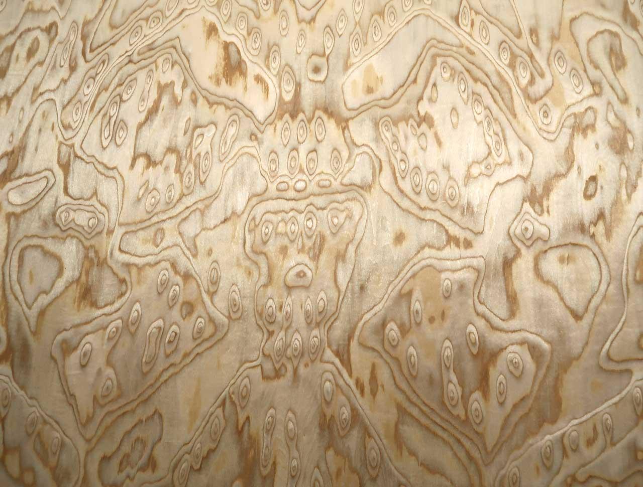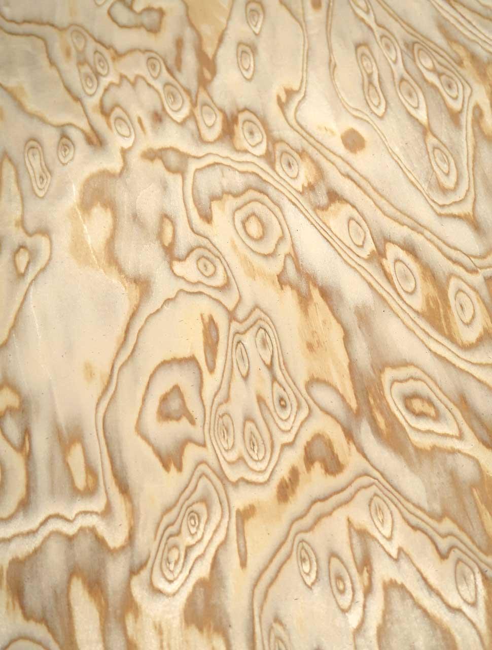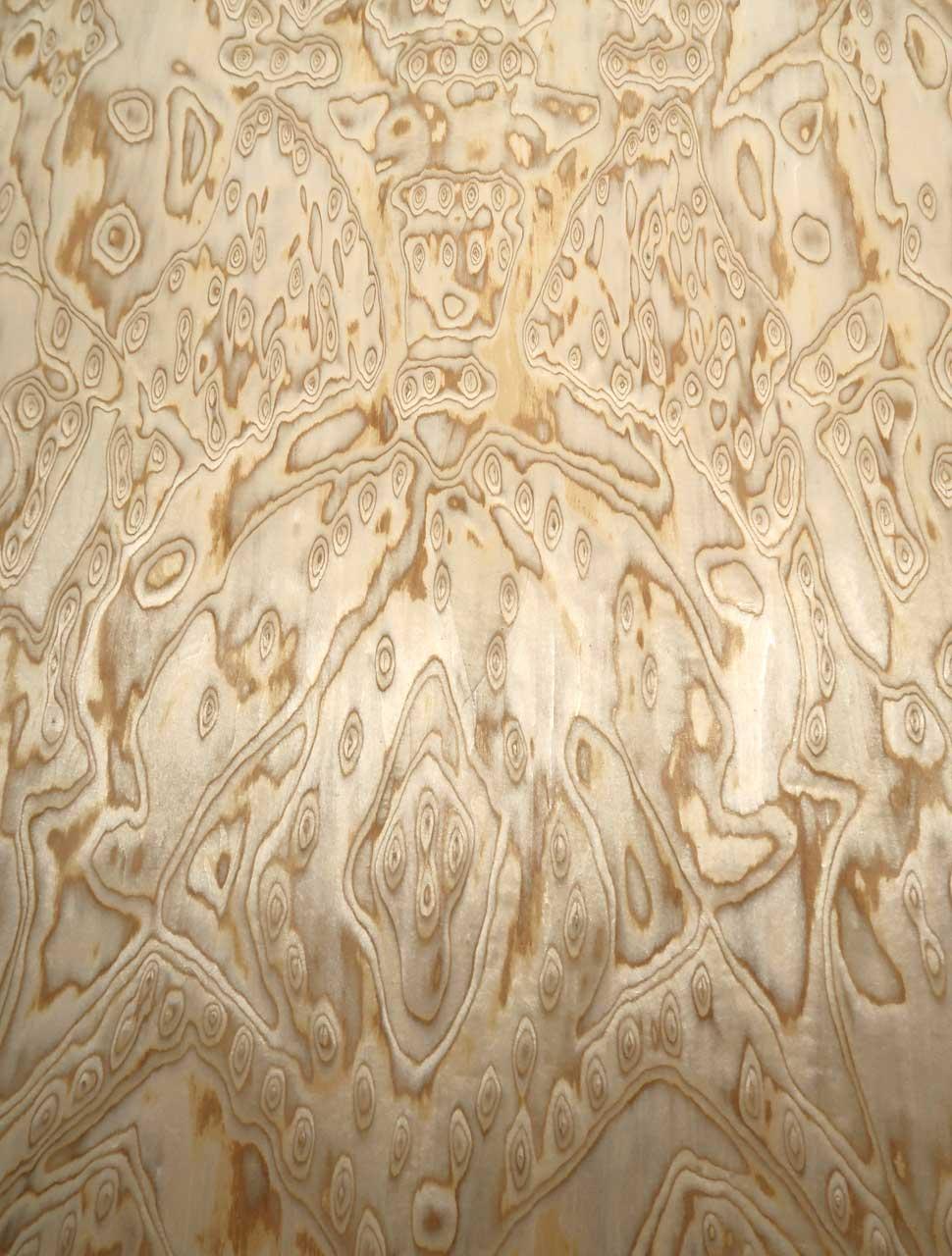 Das ist unser neues Eiche Wurzelholz SaRaiFo* Furnier mit sehr lebhafter und wilder Struktur. Dieses Eiche Maser Holzfurnier wird aus schnellwüchsigem Holz mit vielen feinen Echtholzlamellen unter mehreren Produktionsprozessen verpresst/flächenverleimt (E1) und anschließend zu diesem flächigen Wurzelholz Maserfurnier verarbeitet. Die Struktur und das Erscheinungsbild ändert sich von Blatt zu Blatt immer etwas. Auf dem letzten Foto sieht man das Furnier von hinten mit Licht beleuchtet - also ist dieses SaRaiFo Furnier mit Vlies transluzent und somit gut lichtdurchlässig!