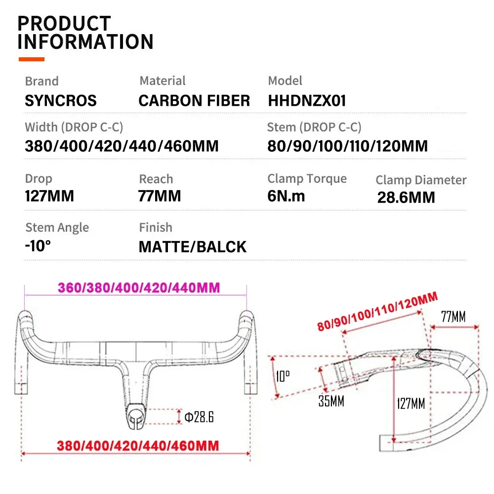 Handlebar Width (Drop C-C)2:360/380/400/420/440MM