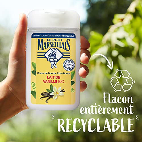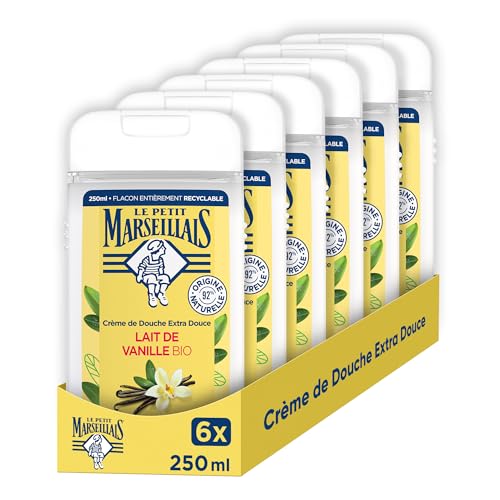 Le Petit Marseillais - Crème de Douche Extra Douce Lait de Vanille Bio (lot de 6 flacons de 250 ml) – 92 % d'ingrédients d'origine naturelle – Flacon entièrement recyclable
