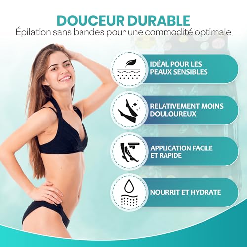 ÉPILATION SANS DOULEUR ET EFFICACE : Réduction significative de la douleur grâce à sa formule haute performance. Cette cire chaude offre une expérience d’épilation plus agréable, même pour les débutants, et garantit des résultats professionnels.