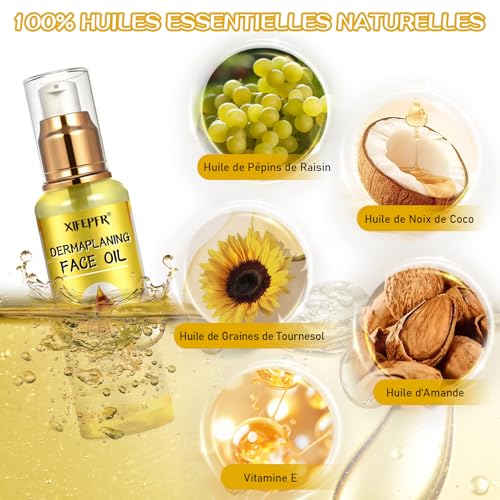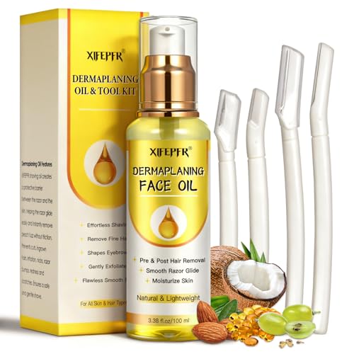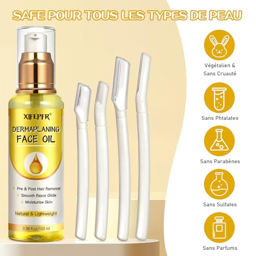 Kit de Dermaplaning Visage, Huile Après Rasage Femme, Soins pour le Visage, Utilisation avec des Rasoir Sourcil pour Femmes, Rasoir Visage Femme, Post Épilation et Pré et Post Rasage