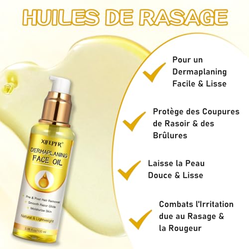 Huile de Rasage Multifonctionnelle: Un peu suffit. Appliquez une fine couche avant, pendant ou après le rasage pour laisser votre peau douce, lisse et rayonnante. Le set d’huile de dermaplanage pour le visage peut également être utilisé sur le corps ou dans la zone du bikini, profitez d’un exfoliation et d’un épilation de qualité professionnelle dans le confort de votre foyer.