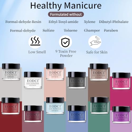 Kit de poudre à ongles Eodci, 12 couleurs pour toutes les saisons : nude, rouge, bleu, blanc, paillettes argentées. Manucure professionnelle à faire soi-même à la maison, sans lampe UV/LED.