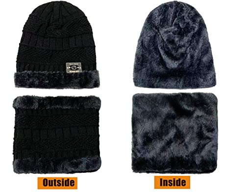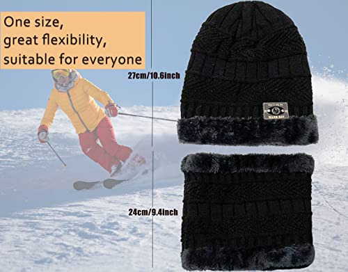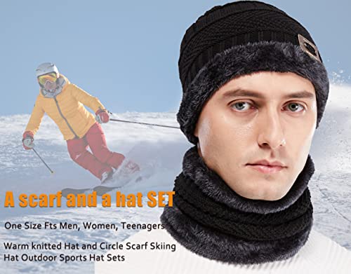 Chapeau d'hiver pour homme en tricot avec écharpe 2 pièces chapeau de ski en plein air et ensemble