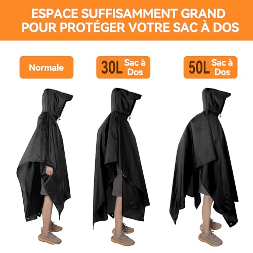 AGPTEK Poncho Pluie Imperméable avec Capuche, Cape de Pluie EVA Randonnée avec Sac de Transport Matériau PU de Camping, Voyage, Activités en Plein Air, Moto/vélo pour les Hommes et Femmes