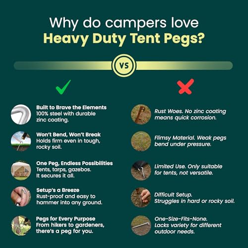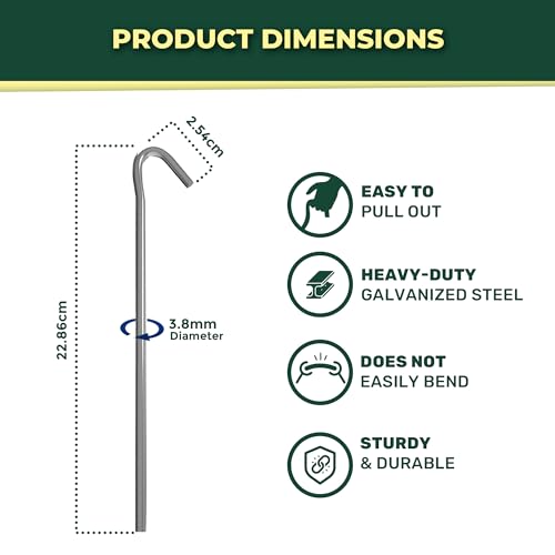 CUQOO Lot de 50 Piquets de Tente 9" Ultra-Résistants – Piquets de Sol en Acier Galvanisé Durable – Piquets Métalliques Antirouille pour Camping, Tonnelles, Randonnée et Extérieur – Pack de 50