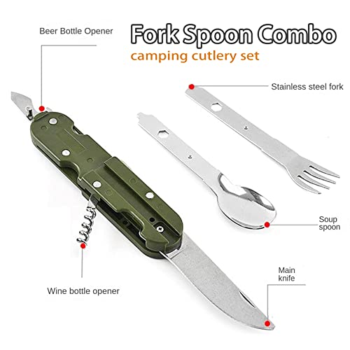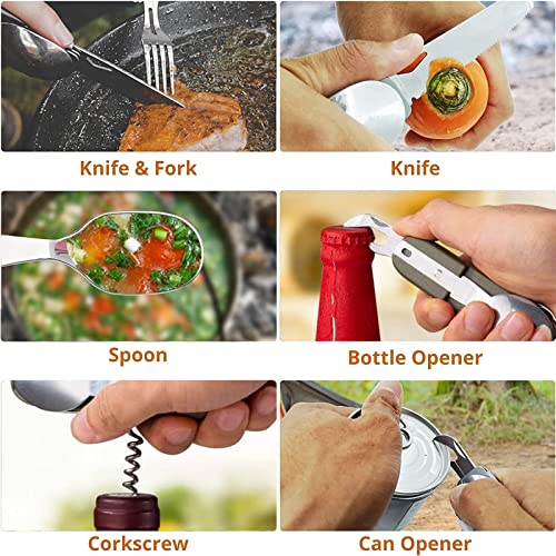 FONCTIONS MULTIPLES: Cet ensemble de couverts pliants est livré avec une fourchette, une cuillère, un couteau, un décapsuleur et un ouvre-boîte amovibles. Une variété de fonctions pour répondre à vos différents besoins.
