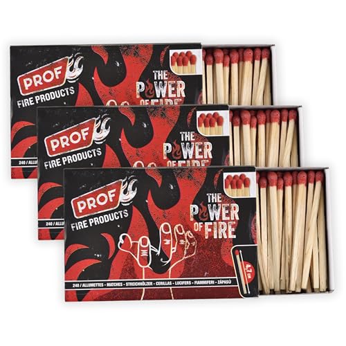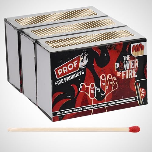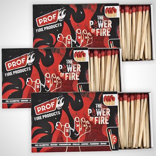 PROF Lot de 3 Boîtes de 240 Allumettes, Longueur 4,7 cm, 720 Cooking Matches, Allume-feu, Compactes et Pratiques pour Cuisine, Bougies, Anniversaire, Camping, Barbecue, Extérieur, Survie, 41806003