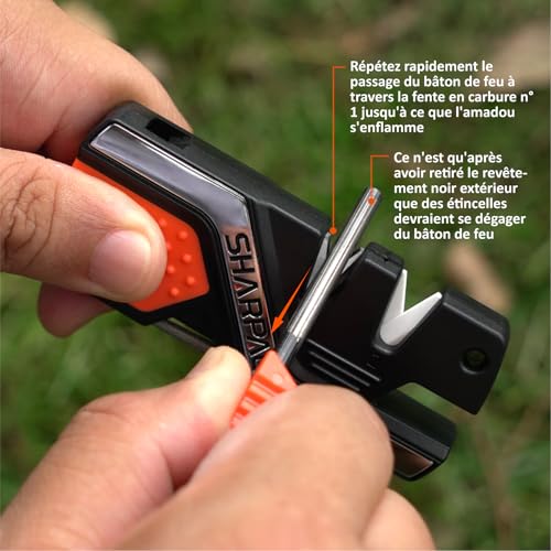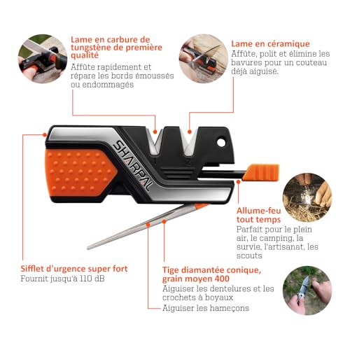 SHARPAL 101N Affûteur pour couteaux de poche et outil de survie 6 en 1, avec un allume-feu,tige d’affûtage diamantée et sifflet, aiguise et polit tous les couteaux d'extérieur et de cuisine