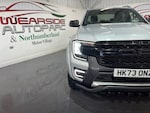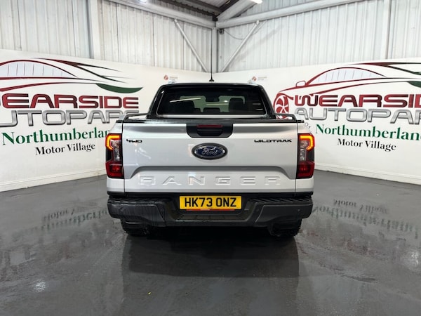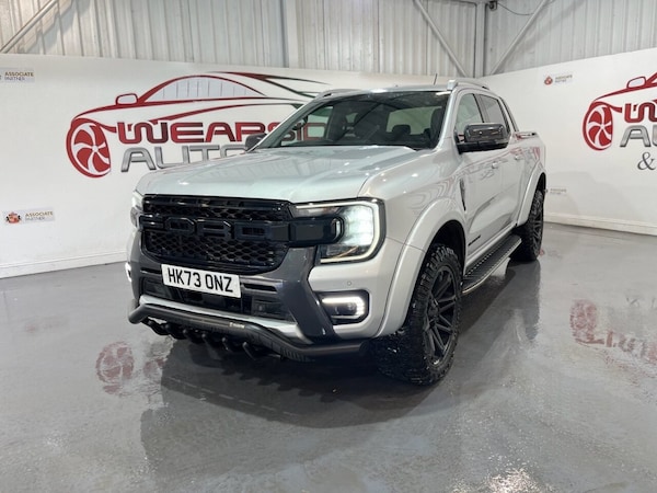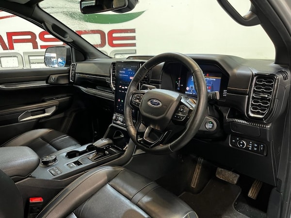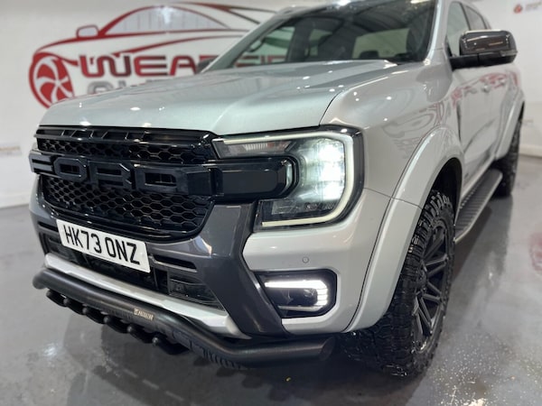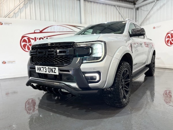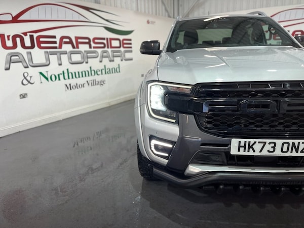 Introducing this beautiful Ford Ranger 2.0 TD EcoBlue Wildtrak Pickup Double Cab Auto 4WD Euro 6 (s/s) producing 205 PS. This is a highly specified example that has been enhanced with 20" DV8 Works alloy wheels, predator bullbars and privacy glass, giving the truck a strong and distinctive road presence. The vehicle is equipped with front and rear parking sensors, a reverse camera and satellite navigation, making everyday driving and manoeuvring simple and stress-free. It features keyless start, electric folding door mirrors, a digital dashboard, automatic headlights, automatic wipers and cruise control. Inside, the Wildtrak offers a full leather interior with front electric heated seats and a heated steering wheel, ensuring comfort in all conditions. Climate control, DAB radio, Bluetooth connectivity and Apple CarPlay provide a modern and enjoyable driving environment. This Ranger combines rugged capability with premium comfort and modern technology, making it ideal for both work and lifestyle use. If you are looking for a powerful, stylish and well-equipped pickup, this Wildtrak is an excellent choice. All vehicles are delivered serviced, with a full 12 months clean (NO ADVISORIES) MOT. All vehicles also come with free complimentary 12 months breakdown cover. All vehicles are supplied with a FREE 6 months warranty. An upgraded, extended 12 month warranty at reasonable additional cost is also available. P/X welcome. Please check our website for our up to date stock of over 400 cars and vans, an excellent selection is always available..DV8 20 alloys + F/R parking sensors , predator bull bars + privacy + NAV + BT, keyless + folding mirrors + digi dash , reverse cam + auto lights + auto wipers, cruise + leather + heated seats + DAB , 12v Aux Power Point Plug Rear, 18in Alloy Wheels - A-S Tyres, 2 Remote Control Unit - Key Fobs, 360 Zone Lighting, ABS - Anti-Lock Braking System and ESP - Electronic Stability Programme Plus, Accent Colour Exterior Mirror, Accent Colour Grille, Acoustic Laminated Windscreen, Assisted Conventional Tailgate, Body Protection Pack 2, Cargo Light, Child Proof Rear Door Locks, Console with Double Lid, Conventional Gearshift, Daytime Running Lamps, Decklid Handle - Self Coloured, Door Handles - Body Colour, Driver Assistance Package, Driver Sunvisor with Mirror, Drivers Airbag, Dual Power Heated Fold Back Mirrors with Puddle Lamps, E-Marked Glass, EPAS - Electric Power Assisted Steering, Ebony Headliner, Electric Rear Window Defroster, Electric Windshield Defroster, Electrochromic Inside Mirror, Electronic Automatic Air Conditioning, Electronic Parking Brake, Feature Pack B, Fog Lamp Bezels, Fresh Air Heater, Front Bumper Accent Colour, Front Headlamp Leveling, Front Seat Pack 7, Front Splash Guard, Front Towing Hooks, Fuel Tank Guard, Functional Upgrade Pack 3, Glovebox Lights, Grab Handle - Roof Mounted Passenger Side, Heated Steering Wheel, Heavy Duty Terrain Pack, High Mounted Stop Lamp, ICE Feature Pack 102, Ice Warning, Inside Door Handles - MIC, Interior Ambient LED Lighting, Interior Trim Pack 13, LED Front Fog Lamps, Less Outside Tie Down Hooks, Level 2 Headlamp - LED Reflector, Level 2 Taillamps - LED, Load Rest, Locking Glovebox Lid, Locking Wheel Lug Nut, Manual Liftgate, Metal Underbody Protection, Narrow Bodyside Moulding - Insert, Non Locking Capless Fuel Fill, Non Woven Carpet, Outside Thermometer, Overhead Console with Dome Lamps, Painted Front Fender Grill, Partial TFT-LCD Instrument Cluster, Passenger Airbag, Passenger Sunvisor with Mirror, Passive Keyless Entry and Start, Pickup Side Rails, Plastic Cab Roll Over Bar, Pollen Filter, Power Door Deadlocks - Double Locking, Power Rear Windows, Power Tailgate Lock, Power Windows Front with One-Touch Up and Down, Premium Air Register, Premium Front Floor Mats, Premium Rear Floor Mats, Privacy Glass, Pull Out Cup Holder, Rain Sensitive Windshield Wipers, Rear Bumper Accent Colour, Rear Bumper Extension, Rear Bumper Step - Integrated Rear Box Step, Rear Floor Ducts, Rear Fog Lamps, Rear Seat Pack 1