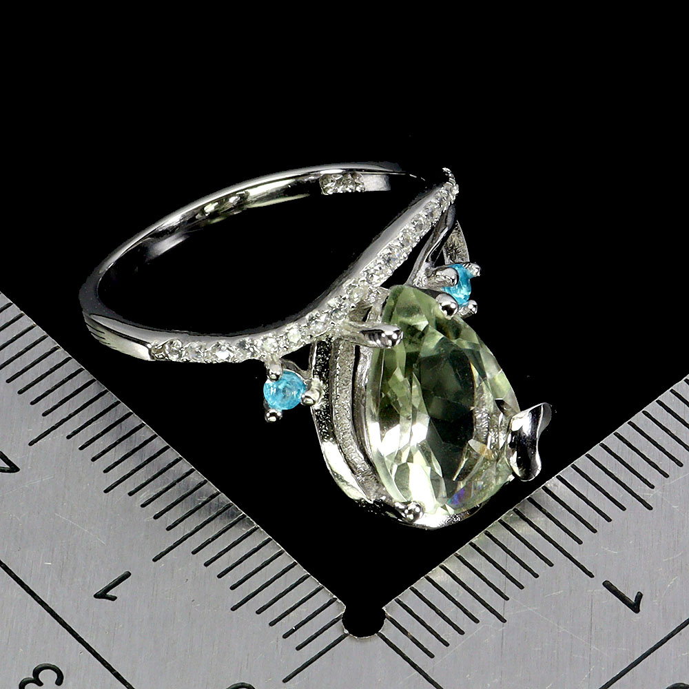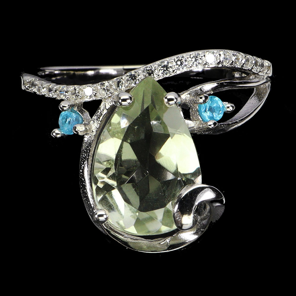 925 Sterling Silver Ring Pear Green Amethyst 12x8mm Apatite Gemstone Jewelry 7