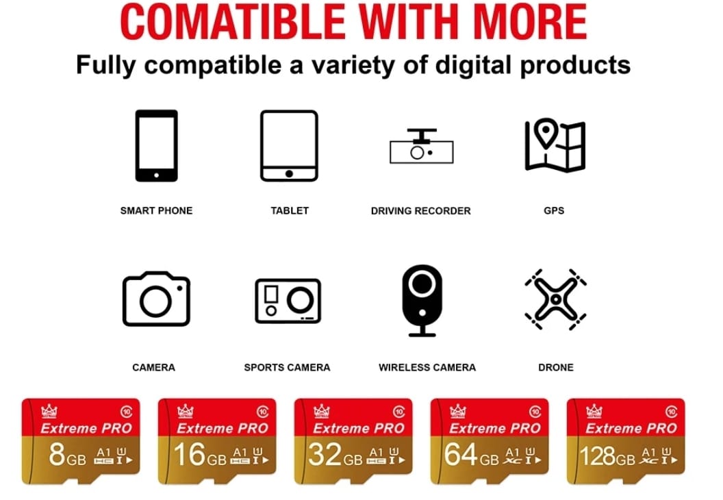 Capture more fast action and record more Full HD or 4K UHD video with your Android based smartphone, interchangeable-lens camera, drone or GoPro action camera. The Extreme microSDHC and microSDXC UHS-3 Cards are built tough for extreme durability under challenging environmental conditions. Extreme speeds let you capture every detail of adventure and take the wait out of transferring your videos between devices. Storage capacities from 32GB to 256GB expand your device's memory and let you record 4K UHD video. SanDisk products are constructed to the highest standards and rigorously tested. You can be confident in the outstanding quality, performance and reliability of every this product.
