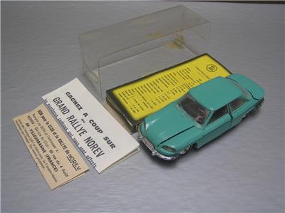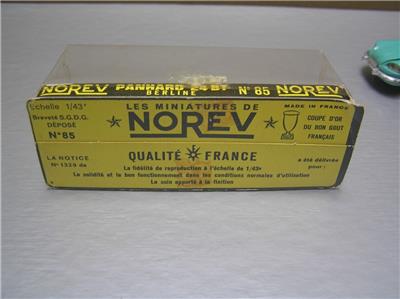 This item is all original, complete and in near mint plus condition with a bit of the typical warpage. The box is complete with minor shelf wear and taping. It includes a couple of rare Norev leaflets.