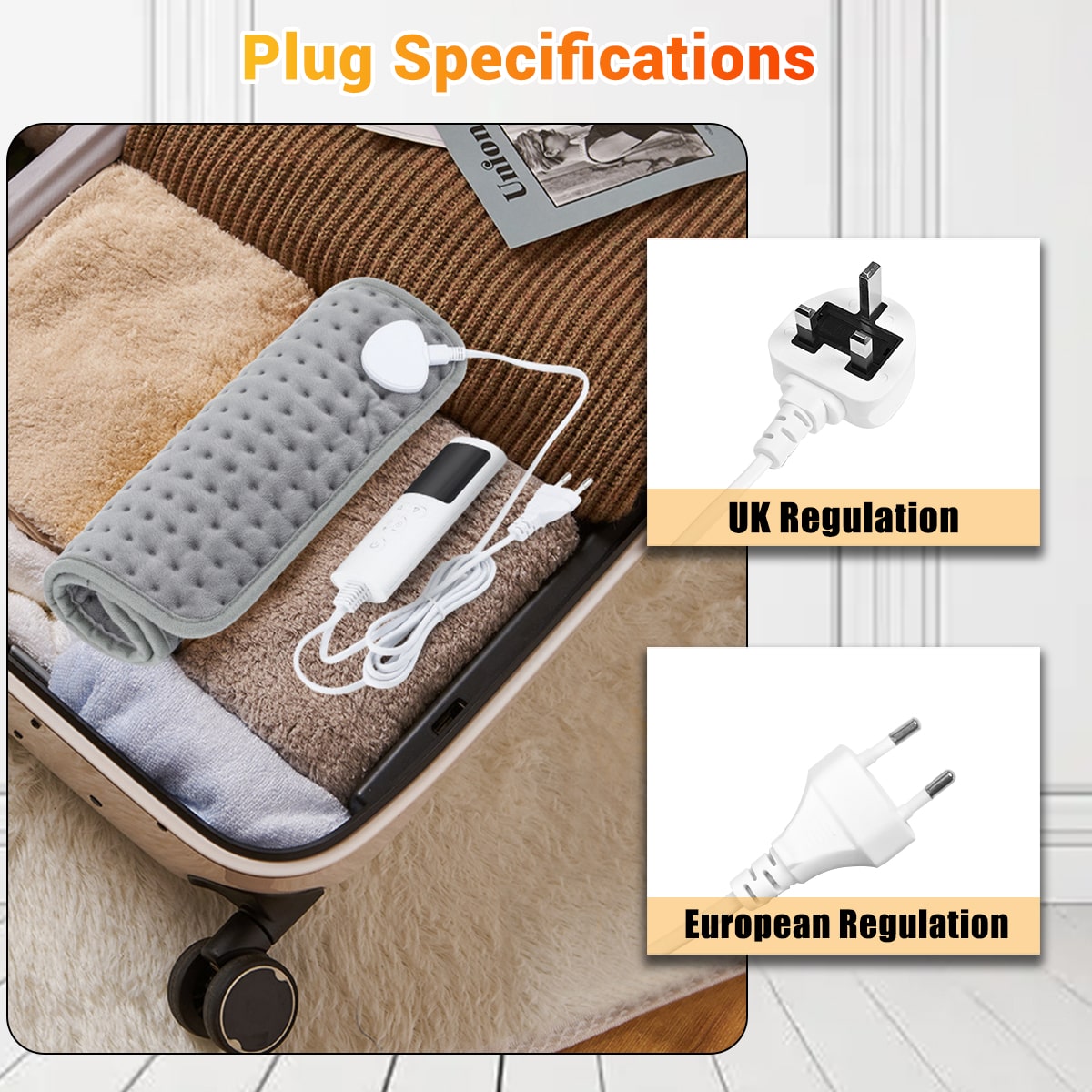 Note: The electric heating pad must be connected to a power source via its plug during use.