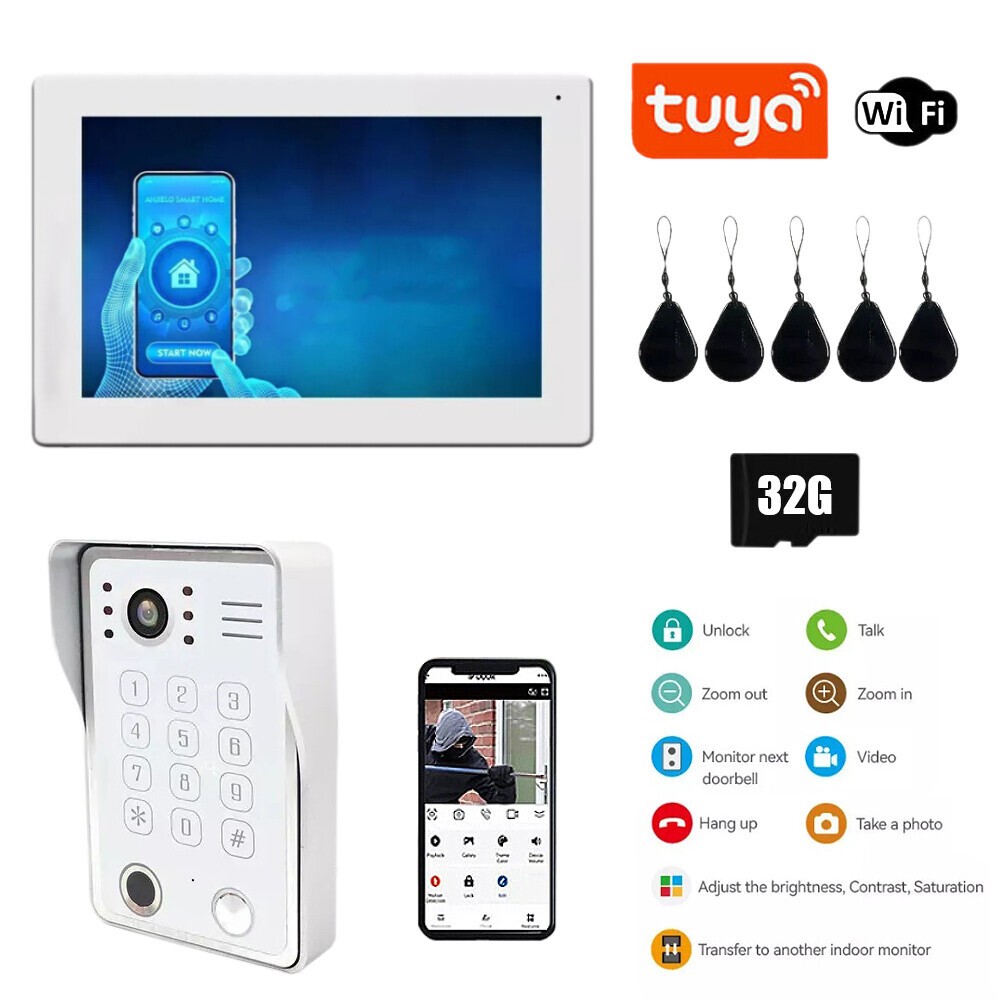 Der 7-Zoll-IPS-Display und die drahtlose visuelle Gegensprechanlage-Türklingel sind leistungsstarke Smart-Home-Produkte. Diese Türklingel verwendet fortschrittliche drahtlose Technologie, die sich mit Mobiltelefonen verbinden kann, sodass Sie die Situation an der Tür jederzeit und überall über Ihr Telefon beobachten können. Es ist mit einer 1080P-Videoüberwachungsfunktion ausgestattet, die klare Bilder und Videos liefern kann. Durch die integrierte Kamera können Sie Besucher in Echtzeit anzeigen und Zwei-Wege-Anrufe tätigen, um mit ihnen zu kommunizieren.