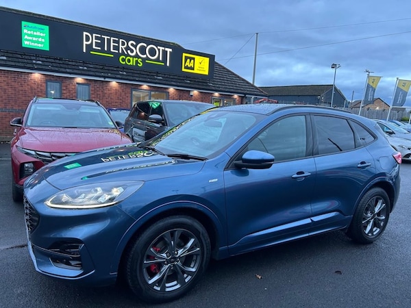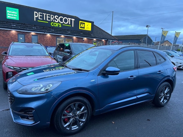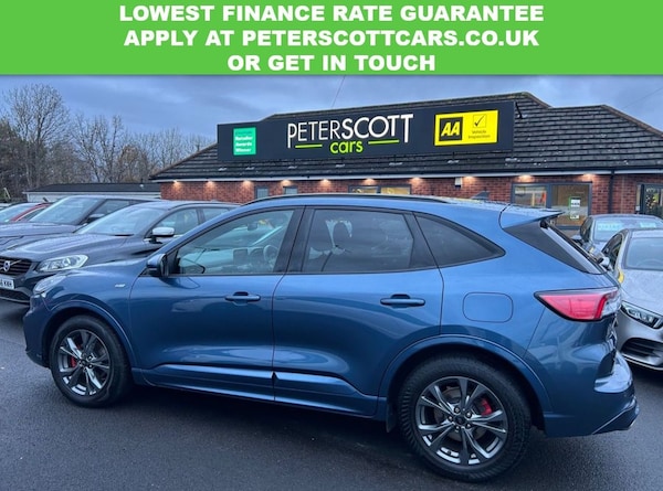 Stunning, high specification Ford Kuga St-Line Edition with Bang & Olufsen sound system, Satellite navigation, Rear view camera, Wireless charging pad, Handsfree Power tailgate, Bluetooth audio and much more. One mature gentleman owner from new. Lovingly cared for low mileage example. This practical and economical Ford Kuga has been independently inspected by the AA for your added peace of mind. Visit , to reserve this car and apply for finance. Low rate finance available. Please ask for a personal quote or use the finance calculators on our website before submitting a full application. All finance can be arranged and signed remotely. Comes with both keys, service history all documentation full clear Gold HPI Report, 128 point AA Inspection Report carried out by AA engineers including a 5 mile test drive before issuing the Pass certificate and the 5 page inspection report. AA History Check Reprt and 12 months AA Breakdown Cover included. Please call or message if you require further information or to make an arrangement to view. Peter Scott Cars is an Award Winning family run dealership with over 30 years experience in the sourcing and supply of high quality vehicles..10-Way Power Adjustable Drivers Seat, 12v Power Point in Cargo Area, 12V Power Point in Floor Console, 12v Socket - Voltage Regulator, 18in Alloy Wheels - 10 Spoke - Rock Metallic, 2nd Row Sliding Seats, 8-Way Manual Passenger Seat including Lumbar Support and Height Adjust, ABS - Anti-Lock Braking System with Enhanced Electronic Stability Control - ESC with Traction Control - Emergency Brake Assist - EBA - Hill Start Assist, Air Conditioning - Electronic Automatic Temperature Control - EATC, Airbag - Driver and Front Passenger Side, Airbag - Front Passenger Deactivation Switch, Airbags - Driver and Front Passenger, Airbags - Front and Rear Side Curtain, Aluminium - Finish Front Scuff Plates with ST-Line Script, Aluminium Foot Pedals - ST-Line Design, Ambient Lighting, Auto Dimming Rear View Mirror, Auto Wipers, Automatic Door Relocking, Automatic Headlights with Auto High-Low Beam, Black Roof Rails, Centre Console with Electronic Parking Brake, Chrome Blue, Cruise Control with Intelligent Speed Limiter, Driver and Passengers Sun Visor with Illumination, Dual Exhaust Tailpipes with Unique Brushed Stainless Steel Finish, eCall, Electric Childproof Locks on Rear Doors, Electric Parking Brake with Auto Hold, Electrical Charging Point in Second Row, Engine Immobiliser - SecuriLock, EPAS - Electric Power Assisted Steering, Exterior Door Handles - Body Coloured, Ford Easy Fuel System, Ford Keyfree System - Keyless Entry with Ford Power Starter Button, Ford SYNC3 DAB Navigation System, Front and Rear Bumper - Sporty Body Colour with Rear Ebony High-Gloss Insert, Front and Rear Floor Mats with Red Stitching, Front and Rear Parking Sensors, Front Lower Grille - Ebony Black Mesh, Front Seats - 2-Way Manual Height Adjust Passive Head Restraints, Front Seats - Drivers and Passengers Seatback Map Pockets, Front Upper Grille - Carbon Black Honeycombe Mesh and High-Gloss Black Surround, Front Windows - Laminated Glass, Full Digital 12.3in Instrument Cluster, Full LED Headlamps, Gear Shift - Unique Sensico-Trimmed Knob with Satin Aluminium Insert and Red Gaiter Stitching, Glovebox Lights, Handsfree Power Tailgate, Headlights - Automatic Follow Me Home Lighting, Headlights - Levelling System - Manual, Headlights - Unique Bending, Headliner - Sports Dark, Heated and Power Folding Door Mirrors with Puddle Lights, High-Mounted Brake Light, Kuga Badge, Lane Keeping Aid with Lane Departure Warning, Large Rear Spoiler, LED Daytime Running Lights, LED Fog Lights - Front, Load Com